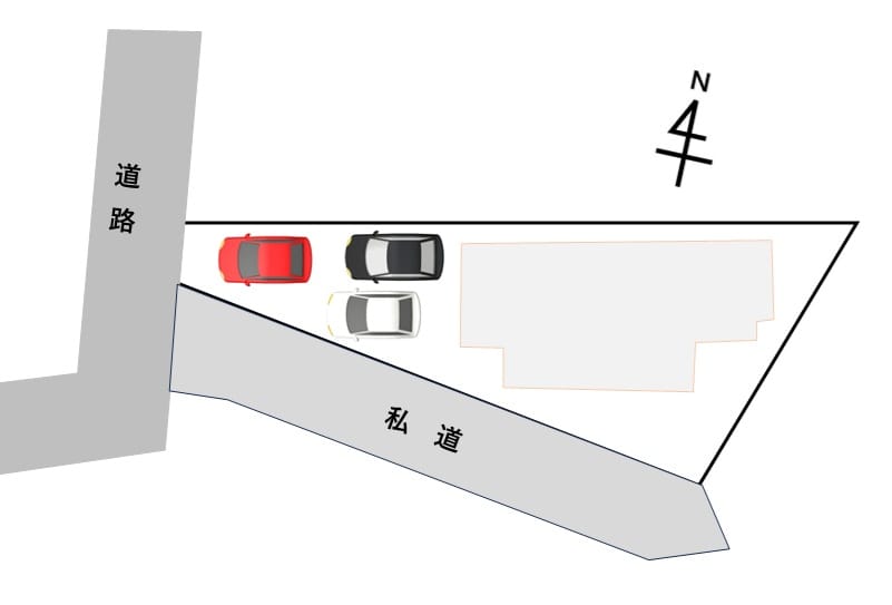 方角:西 道路幅員:4m 公私区分:公道 方角:南 道路幅員:4m 公私区分:私道 |