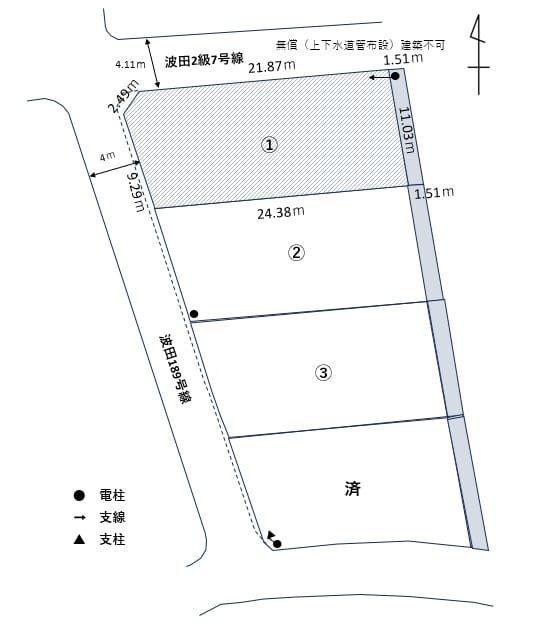 方角:西 道路幅員:4m 公私区分:公道 接面:11.78m 方角:北 道路幅員:4.1m 公私区分:公道 |